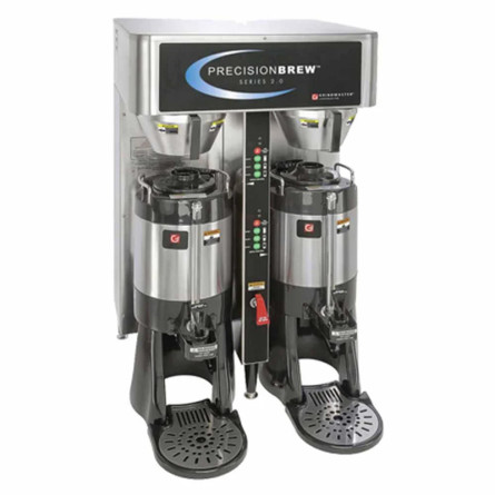 Ficha Técnica:Marca: GrindmasterModelo: PBIC-430-V2Tipo: Cafetera percoladora digital para shuttleCapacidad por ciclo: 5.7 litros (1.5 galones) por termoCantidad de termos incluidos: 2 termos altos tipo shuttleTecnología: Controles digitales PrecisionBrew para mejor saborVolúmenes de percolado: 0.5 a 1.5 galVoltaje: 120V 240VPotencia: 6,600 WAmperaje: 28 AFase: 1FSalida de agua caliente incluidaRequiere instalación y capacitación