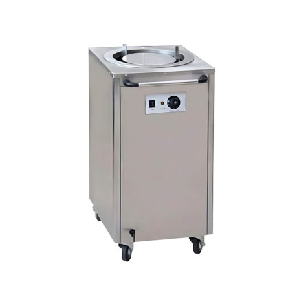 Carro calentador de platos eléctrico para buffets, hoteles y restaurantes, con capacidad de hasta 75 platos, temperatura ajustable y estructura en acero inoxidable para mayor durabilidad.