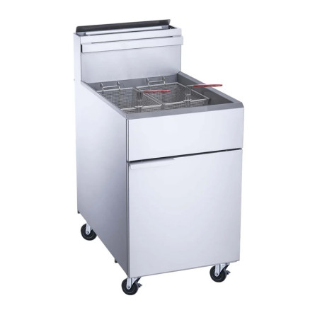 Freidora a gas natural de 32 litros con 5 quemadores de alto rendimiento. Diseño en acero inoxidable, zona fría y drenaje para mayor eficiencia. Ideal para restaurantes y negocios de alto volumen.