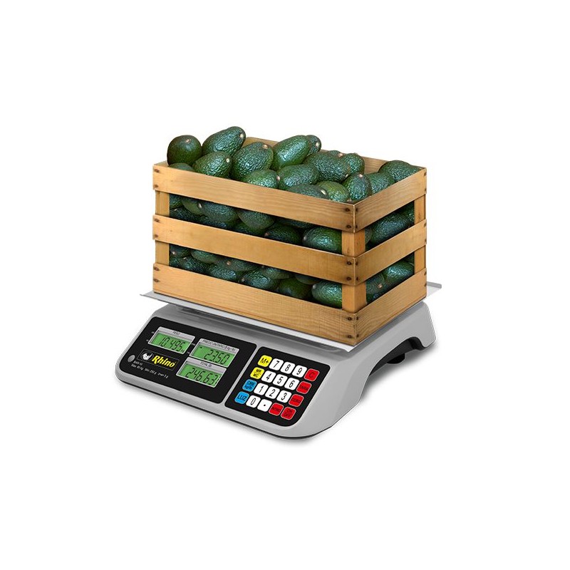 Ficha Técnica:Marca: RhinoModelo: BAR-10Tipo: Báscula comercial recargableCapacidad: 60 kg / 132 lbPrecisión: 5 g / 0.01 lbMaterial del plato: Acero inoxidableMedidas del plato: 36 x 26 cm (espesor 1.2 mm)Medidas generales (Frente x Fondo x Alto): 36 x 36 x 11.5 cm (alto sin plato: 9 cm)Tensión / Frecuencia: 100-240 Vca 50/60 HzAdaptador: 6 Vcc 0.5 AhBatería recargable: 4 Vcc 4 Ah, duración aproximada 300 horasUnidades de pesaje: kg y lbFunciones adicionales: Suma productos no pesados a la cuenta, pantalla iluminada para usuario y cliente, pantallas de peso, precio y total, puerto USBIncluye mica protectora contra líquidos, harina y polvo